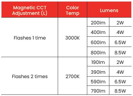 - Color Temperature: 2700K/3000K Adjustable